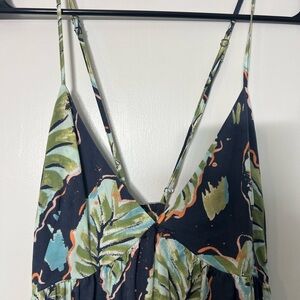 This elegant sundress by Patagonia features a sleeveless design with spaghetti straps and a plunge neckline, perfect for resort wear. The dress showcases a striking blue and black color palette, ideal for a casual summer day. Its maxi length and lightweight fabric ensure comfort and style in warm weather.