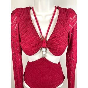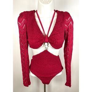Patbo Bordeaux Textured Lycra Cutout Body Suit Long Sleeve Swim Suit Size XS