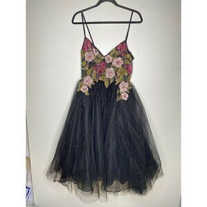 Patbo Cocktail Dress Size 12/44 Black Patricia Bonaldi Beaded Floral Bustier NEW