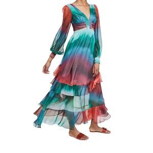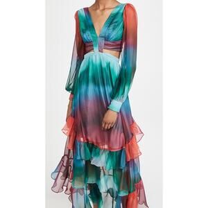 Patbo Sunset Ruffle Layered Signature Cut Out Maxi Dress 4 Long Sleeves S25