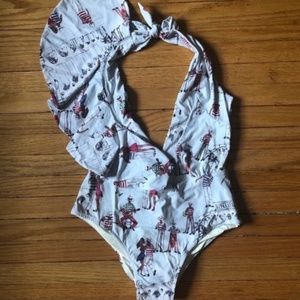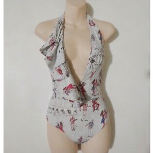 Size: US M | PatBO PATBO S PLUNGE V NECK ONE PIECE SWIMSUIT MULTI COLOR NWT $350