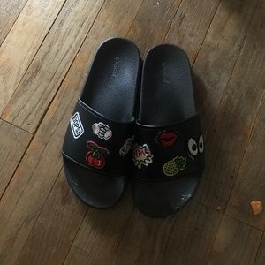 Black slides with cute patches