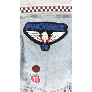 Patch faded blue denim jean jacket west coast phoenix 79 distressed