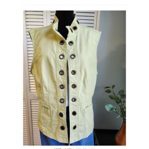 Patchington Chartreuse Green Denim Vest L Cotton Stretch Grommet Detail