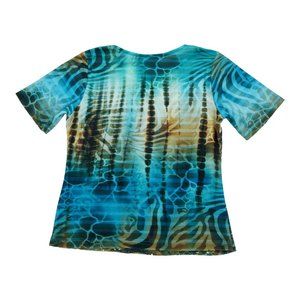 Patchington Womens Short Sleeve Green/Yellow Blouse Size Medium (M)