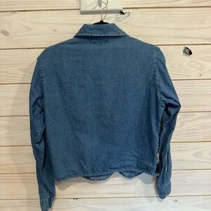 Make a statement with this patchwork jean shirt/jacket featuring bold animal prints. The vibrant blue and yellow colors add a unique touch to your wardrobe. 22” shoulder to hem and 18” pit to pit.