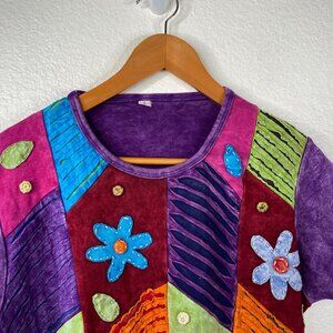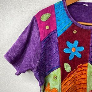Great Pre-owned Condition Patchwork Boho Hippie Flower Fairy Colorful Top Multicolor Size L/XL