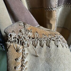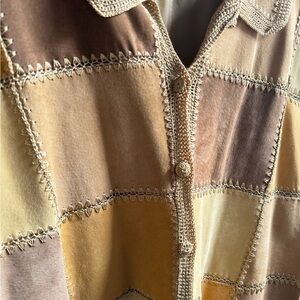 Stylish patchwork button-up jacket. Dupe of Free People Edie Crochet Chore Jacket.