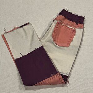 Patchwork Colorblock denim pants boho casual streetwear Good vibes 26x29