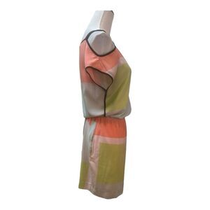Keywords: patchwork dress, one shoulder dress, sleeveless dress, geometric print, mini dress, summer dress, casual dress, party dress, multicolored dress, contemporary dress, day dress, vacation dress, elastic waist