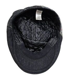 Patchwork Flat Cap M/L Wool Blend Herringbone Houndstooth Design Newsboy Retro