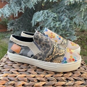 Patchwork Floral Leopard Canvas Slip On Fashion Sneakers. Women size 9