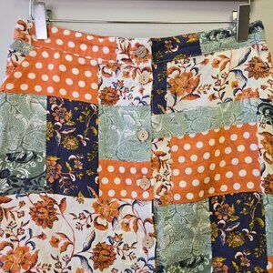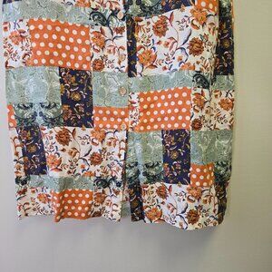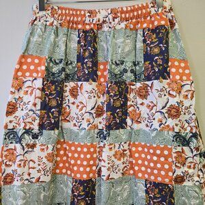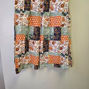 Patchwork Floral Linen A-Line Midi Skirt Gypsy Boho Cottagecore Multicolor Womens Size M