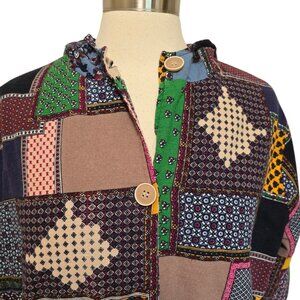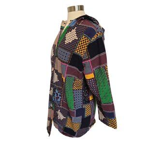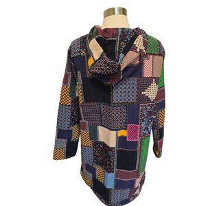 Patchwork Jacket With Hood Retro Style Long Fits Like Womens Size Large