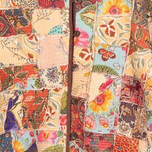 Patchwork Kantha Jacket XL Floral Boho Peasant Festival Long Layering Earthy