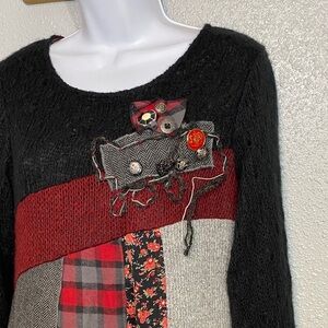 Embrace unique style with this patchwork long sleeve dress. Featuring a blend of black, red, and gray, this dress offers a chic and artistic look. Perfect for any occasion. VGUC. Size medium. Pit to pit 18”. Shoulder to hem 33”.
