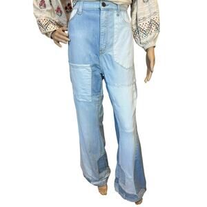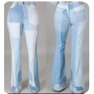 Patchwork Mixed Up Duo Denim Y2K Flared High Waist BOHO Blue Jeans Women’s 31x33