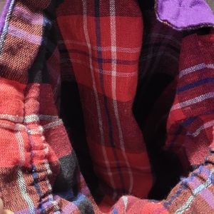 Handmade backpack purse. Never used. drawstring and metal snap button closure.