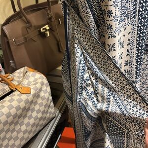 Stylish patchwork patterned dress with a mix of black and white tones. Perfect for any occasion.