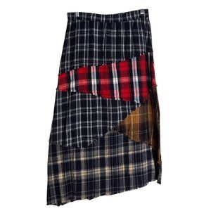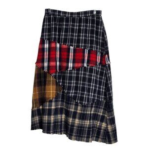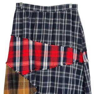 Patchwork Plaid Asymmetrical Elastic Waist Long Skirt Size Medium