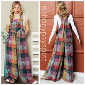 These multicolor brushed overalls will be a must-have for fall. The soft, flannel-like material will keep you warm all winter. The wide leg cut is cute and flattering for everybody! Adjustable straps and front and side pockets.
