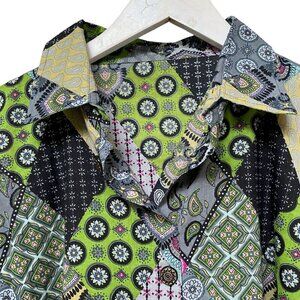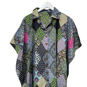 Patchwork Print Long Shirt O/S Green Kaftan Boho Artsy Cottagecore Prairie