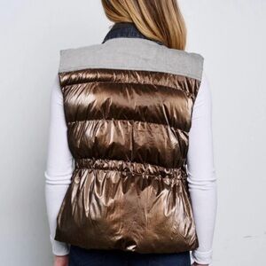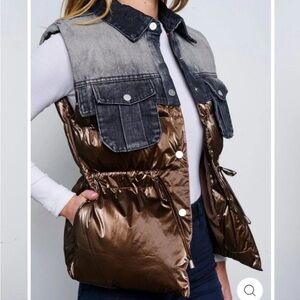 Make a statement and stand out in style with this unique, partial ombré denim patchwork vest from 36 Point 5!