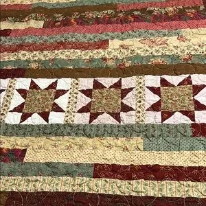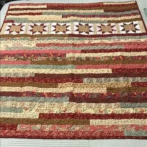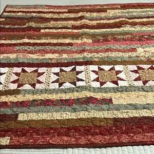 This beautiful patchwork quilt features a stunning star pattern, perfect for adding a touch of comfort to your home. The multicolor design includes rich shades of red, green, brown, and tan, creating a warm and inviting atmosphere.