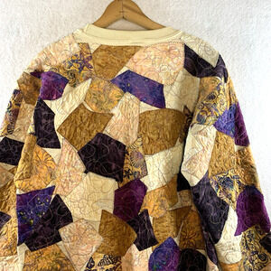 Patchwork Quilted Women Cardigan Jacket Sz L/XL Boho Hippie Cottage Folk Boxy