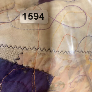 Excellent pre-loved condition, no flaws noted. No tags, size based upon measurements. Could work for a Large as well. The thread is multicolored. I believe it is primarily cotton and can be machine washed. The inside is soft fleece. I would call this a medium weight jacket.