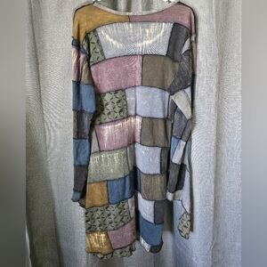 Patchwork Reversible Long Flared Sleeves Knee Length Dress Size M Distressed