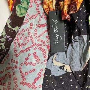 This eye-catching blouse features a playful asymmetrical design with ruffled short sleeves, highlighted by a vibrant mix of orange and green. Its artistic pattern and unique style make it a standout piece for any fashion-forward wardrobe.