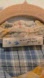 Great preowned condition. Women’s Small. Approximate measurements: 24" pit to pit. 24 1/2" front length. 21 1/2" back length. Slight high low step hem. 19" sleeve length. Stylish plaid shirt with a blend of colors (blue, gold, gray, brown and white). Her entire name says Grace brand. Comes with extra tortoise shell button. Material: 100% cotton. Collared. Lightweight, breathable, fun, statement, western, casual, rodeo, trendy, transitional, fall, winter, flattering, feminine, girly, relaxed fit, oversized, boxy, funky, neutral, mix and match.