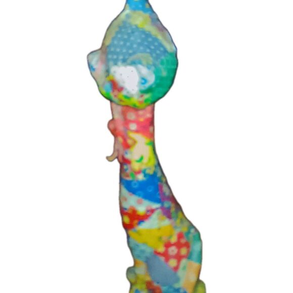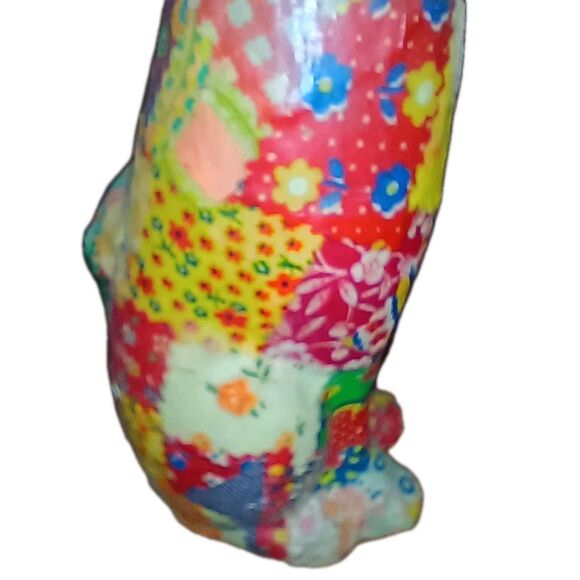 Patchwork Vintage Cat Figurine 14" Tall Decopatch Decoupage Calico Floral