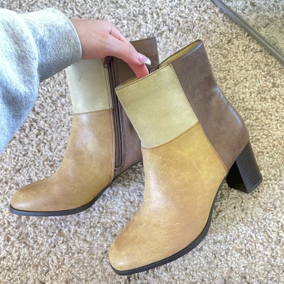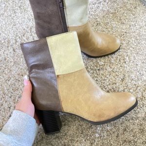 Vintage Patchwork booties🤎 The most cutest comfiest shoes you’ll ever own! Kept in very good condition, just a few marks but are not noticeable overall. I’m sad I have to let them go, they just don’t fit anymore. Brand is New York Transii✨