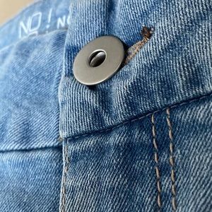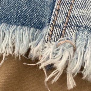 Light blue denim skirt | Patched style | High waisted | 37 inch waist | Fringe bottoms | Great condition |