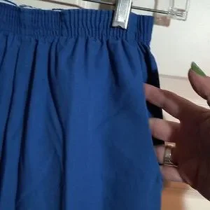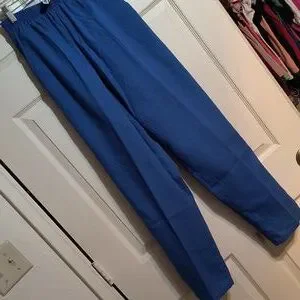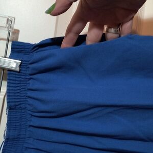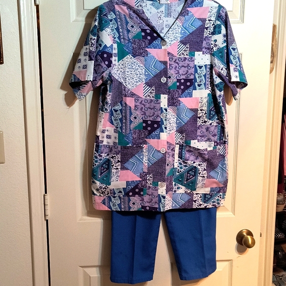 Matching set of patchwork print top with royal blue pants. Gently used but in good condition.