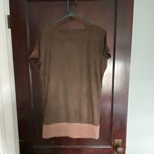 Color is mainly different shades of brown with some plum, cream, dark gray