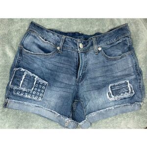Patchwork Jean Rolled Hem Mid-rise Shorts