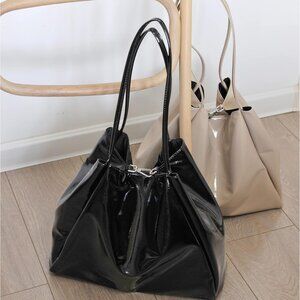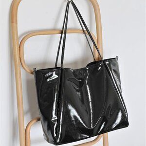 Patent Faux Leather Tote Convertible Shoulder Bag for Women — Spacious, sleek, and versatile.