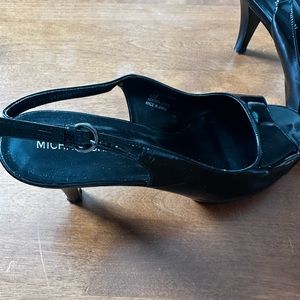 Patent Leather Black size 11 strapped heels.