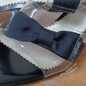 #Lucy #patentleather #vinyl #mule #heels #medium #black #bow #straps #shoes #foot #holidays #party #rare #vintage #preowned