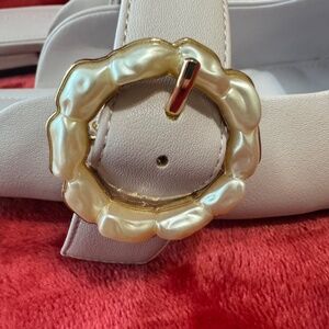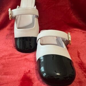 Elevating the classic Mary Jane silhouette by way of an easy slip-on design, these mules put a sophisticated spin on an everyday classic. Featuring adjustable buckled straps that let you find the perfect custom fit, as well as low block heels, they are perfect for all-day wear. Other standout details include the match-all chalk-and-black finish and eye-catching pearl embellishments, which amps up the style factor on these stylish shoes.