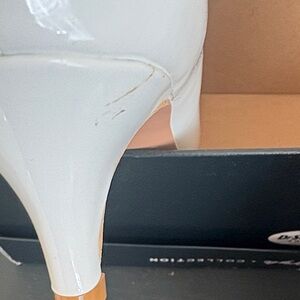 Patent leather Forever 21 Cream Heels with Bow Detail.