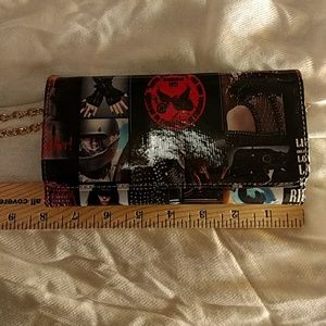 Patent leather photo wallet with gold chain link hardware. Definitely a fashion statement.