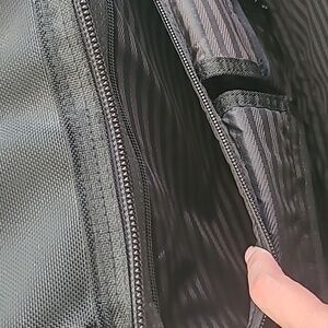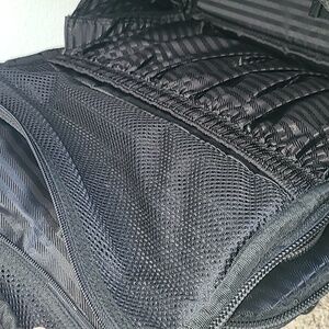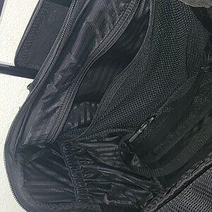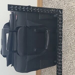 This sleek black rolling bag is perfect for professionals on the go. It offers ample storage and easy mobility.