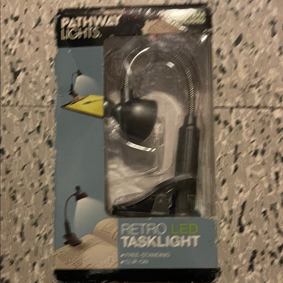 Clip-on retro LED tasklight in black. Flexible gooseneck for adjustable lighting. Compact and portable design. Ideal for reading or focused tasks.