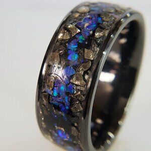 "Pathway" Ring with Blue Opal & Black/Silver Stones