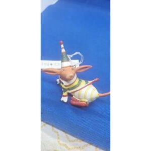 Charming and whimsical, this Patience Brewster dachshund ornament brings joy to any holiday display! Featuring a long-eared pup dressed in a festive striped sweater, red shoes, and a glittered party hat, it captures Brewster’s signature artistic style.