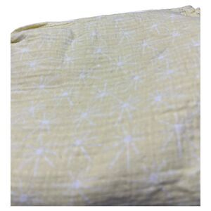 Yellow with starburst/asterisk print muslin swaddle baby blanket from brand Patina Vie. Shows signs of wash wear, pulls in fabric, and some staining. Please see pictures. Clean and ready for a new baby to love.